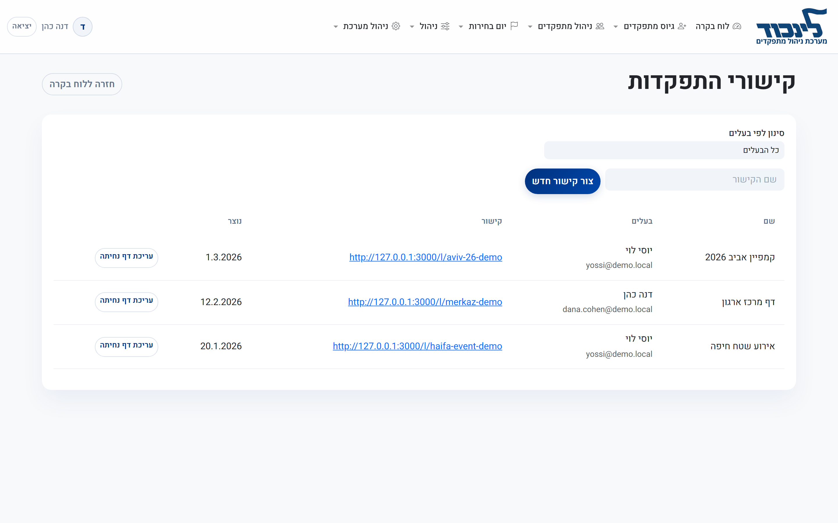 - מאגר מתפקדים מאוחד עם תיעוד פעילות והיסטוריה